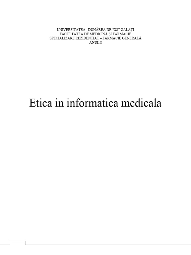în acest context. Etica în informatica medicala se referă la regulile și principiile morale care