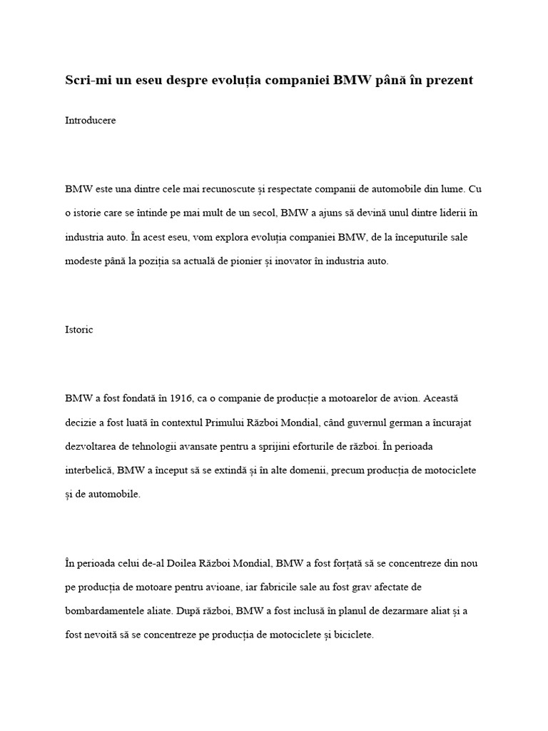 Scri-mi un eseu despre evoluția companiei BMW până în prezent
