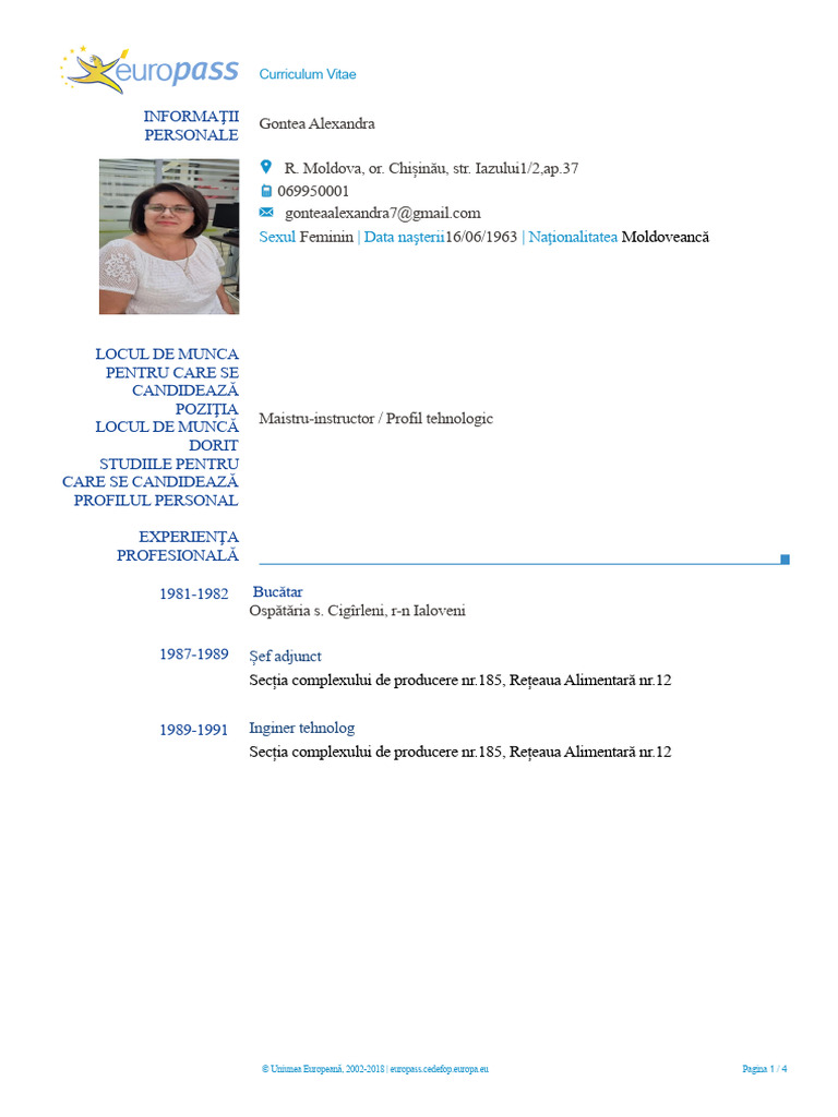 Sexul Feminin | Data naşterii16/06/1963 | Naţionalitatea Moldoveancă