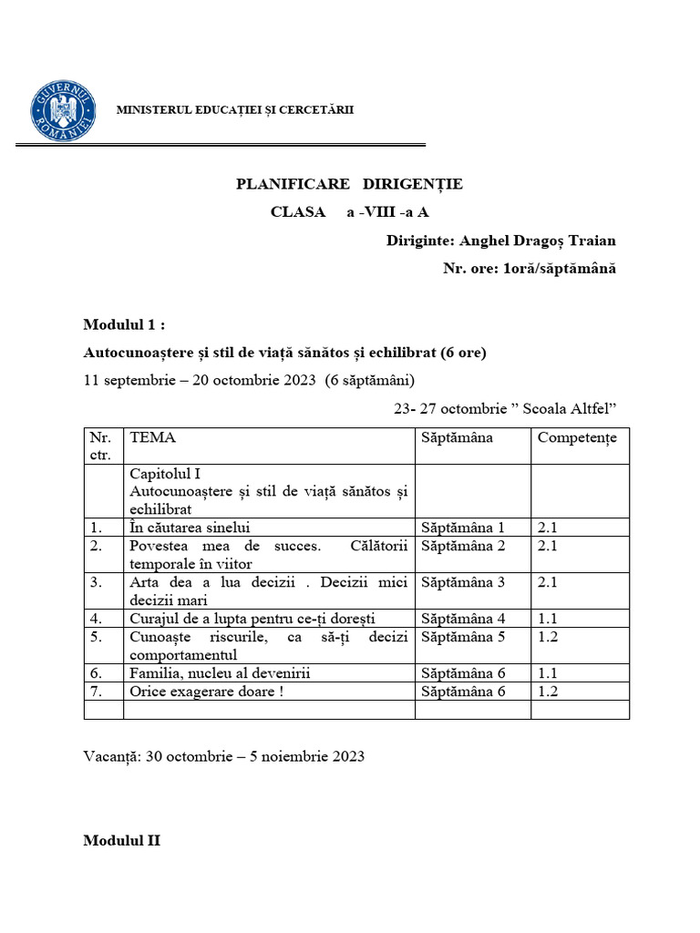 PLANIFICARE DIRIGENȚIE