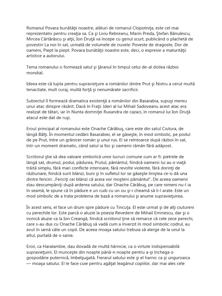 Romanul Povara bunătăţii noastre, alături de romanul Clopotniţa, este cel mai