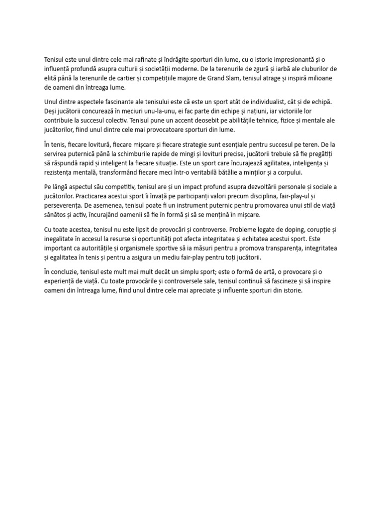 În concluzie, tenisul este mult mai mult decât un simplu sport; este o formă de artă, o provocare și o