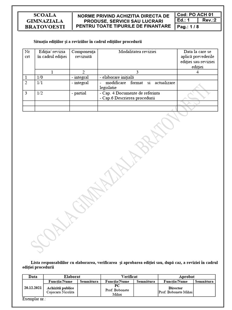 2.1 Procedura se aplica de Comisia de Achizitii Publice din cadrul Scolii Gimnaziale Bratovoesti.