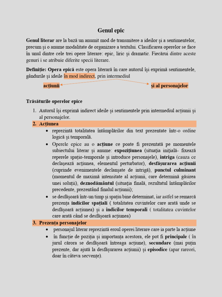 Definiție: Opera epică este opera literară în care autorul își exprimă sentimentele,