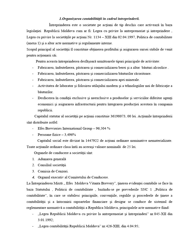 următoare lunii gestionare. La „Efes Vitanta” aproape tot sistemul de ţinere a evidenţii contabile