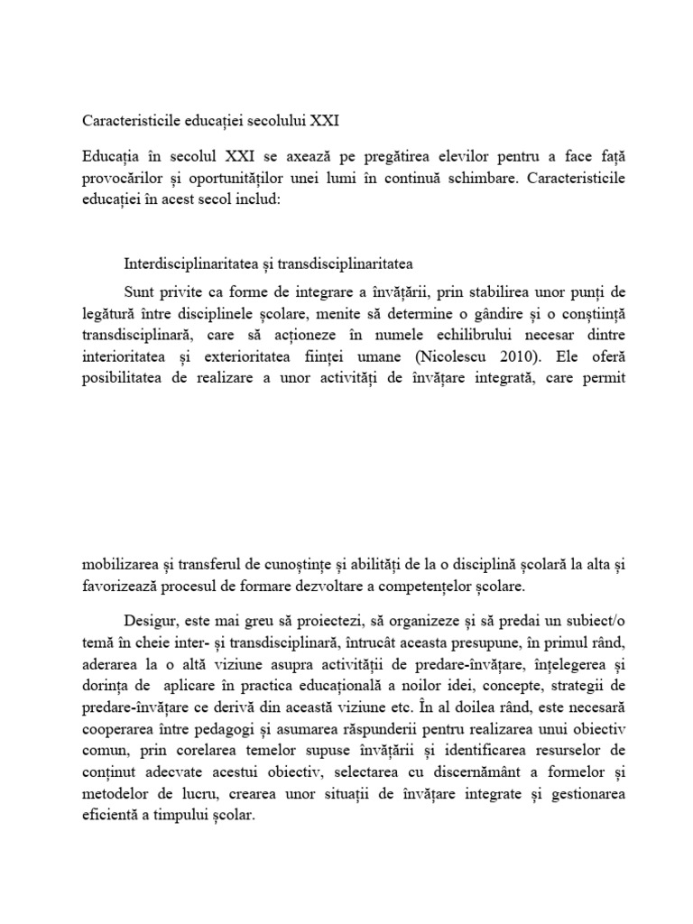 predare-învățare ce derivă din această viziune etc. În al doilea rând, este necesară