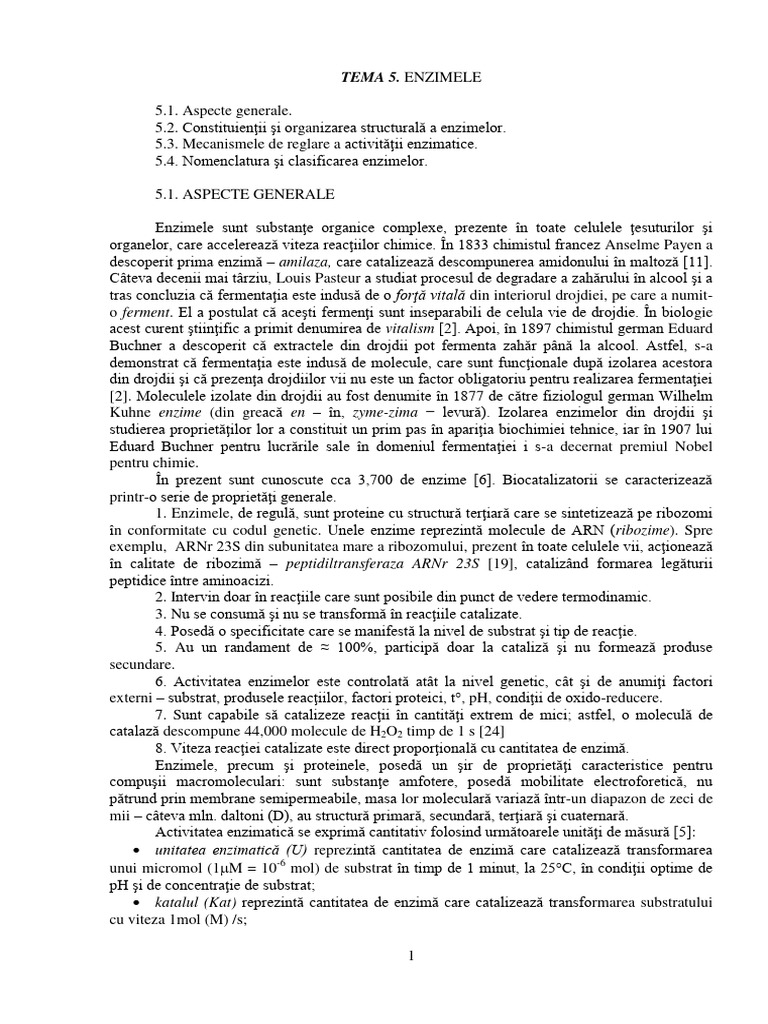 Enzimele sunt substanţe organice complexe, prezente în toate celulele ţesuturilor şi