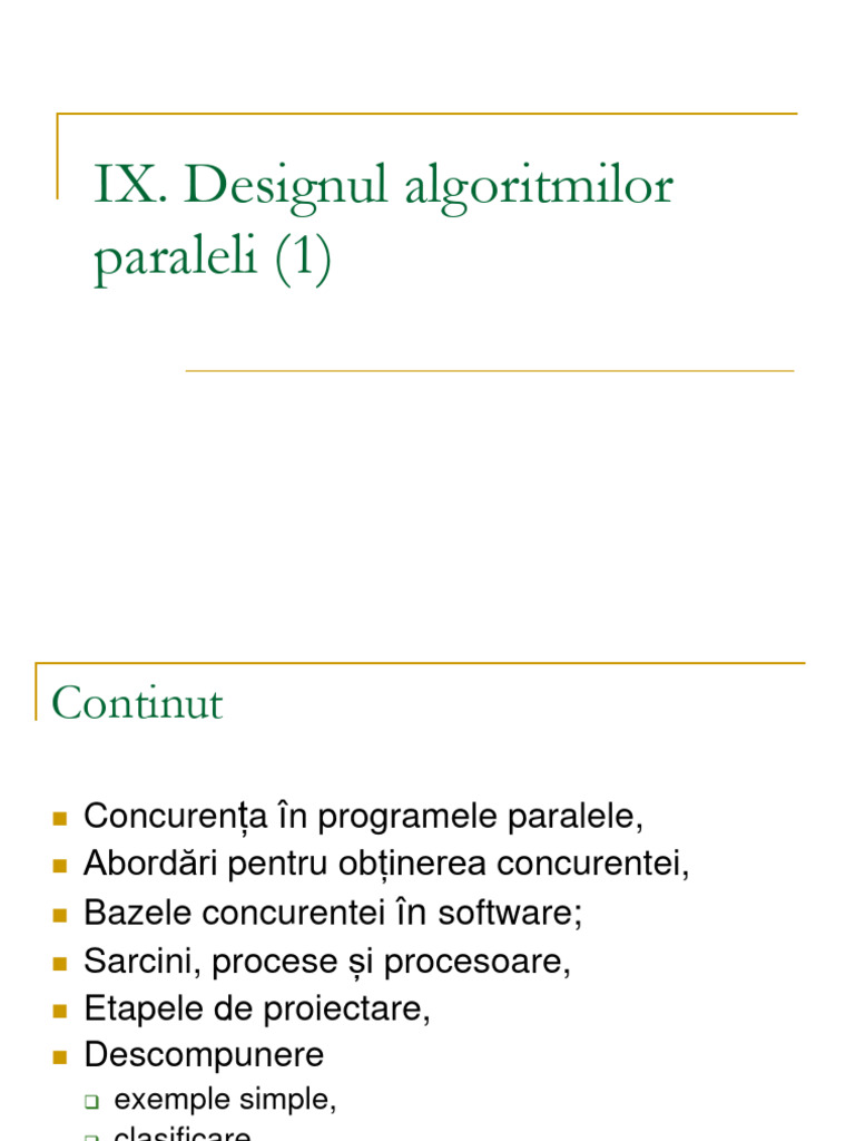 paralel și implementarea algoritmului folosind un mediu de programare paralel.