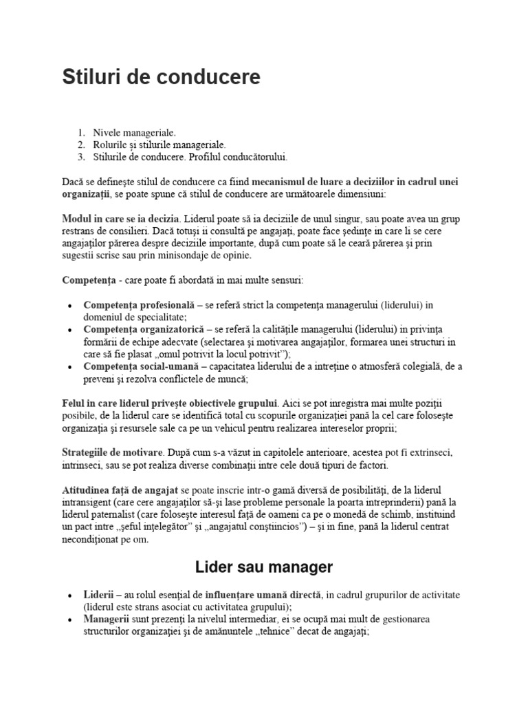 Dacă se defineşte stilul de conducere ca fiind mecanismul de luare a deciziilor in cadrul unei