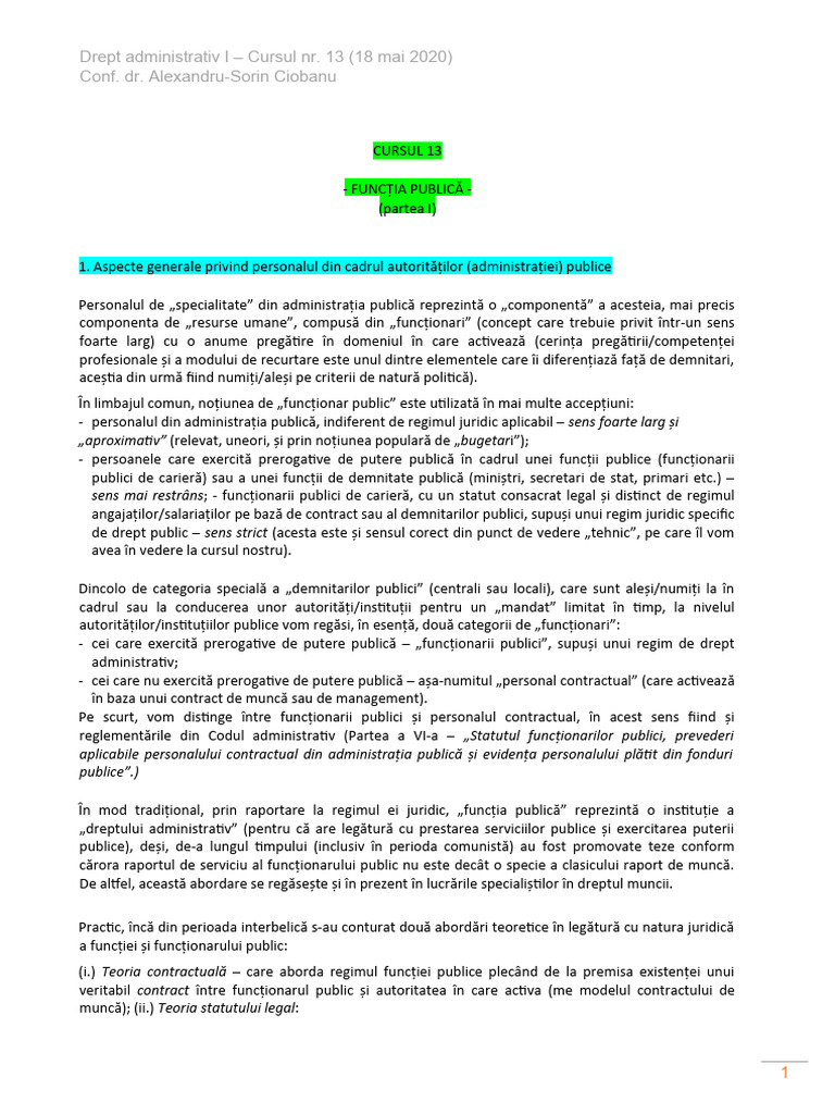 Drept administrativ I – Cursul nr. 13 (18 mai 2020)