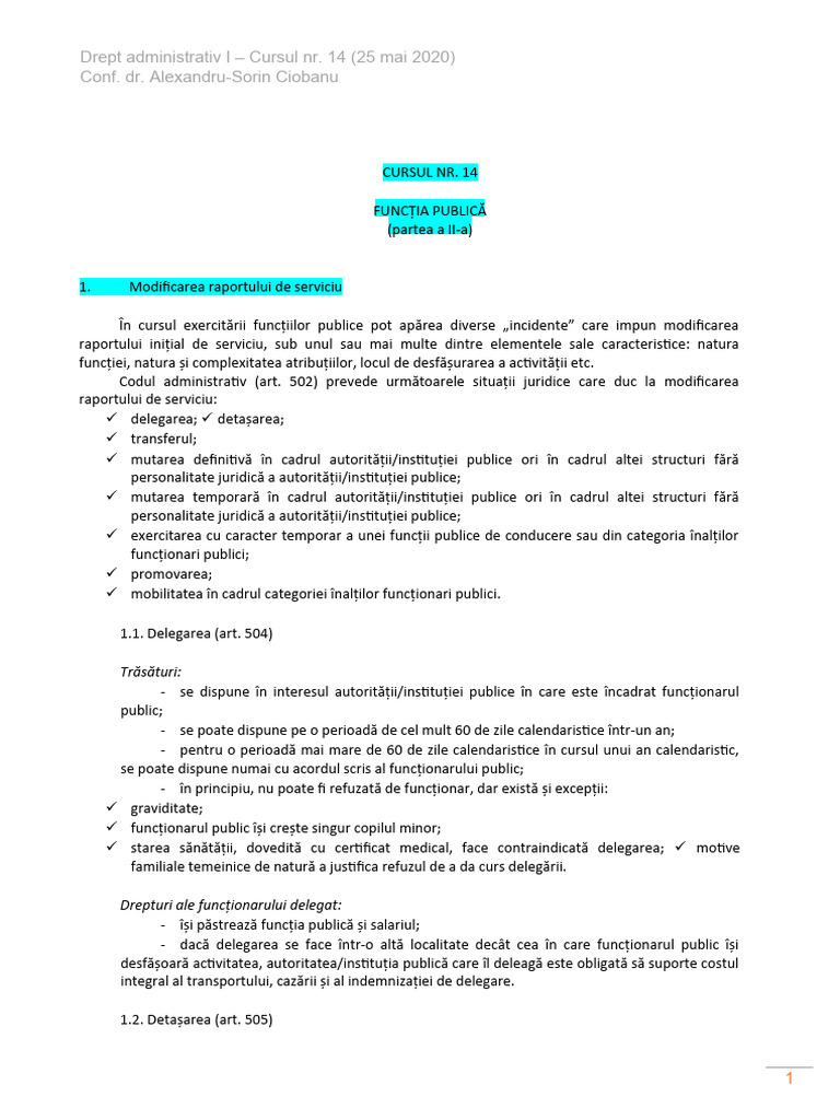 Drept administrativ I – Cursul nr. 14 (25 mai 2020)