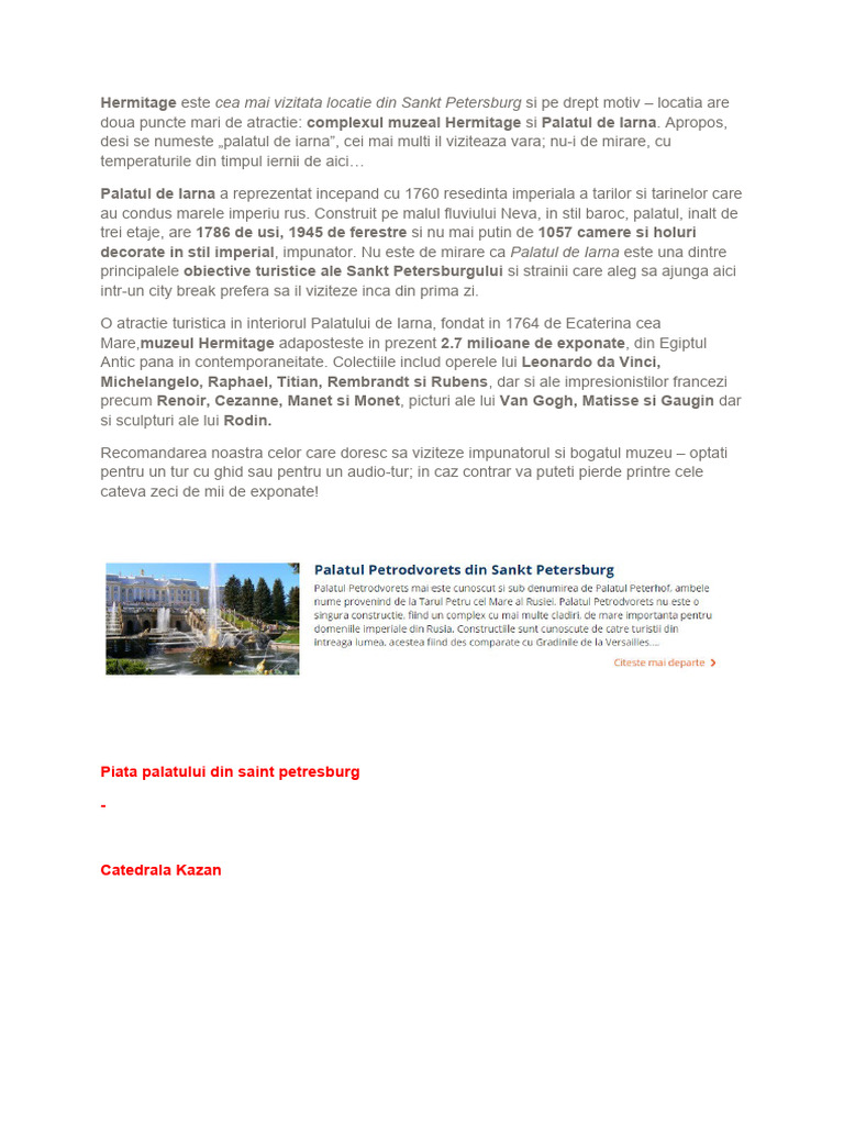va aflati in excursie la Sankt Petersburg si va decideti sa vizitati acest obiectiv turistic, veti fi
