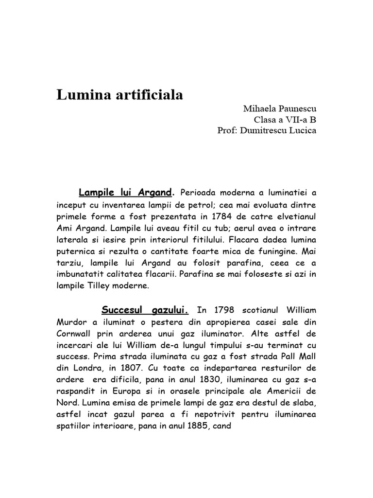 ardere era dificila, pana in anul 1830, iluminarea cu gaz s-a
