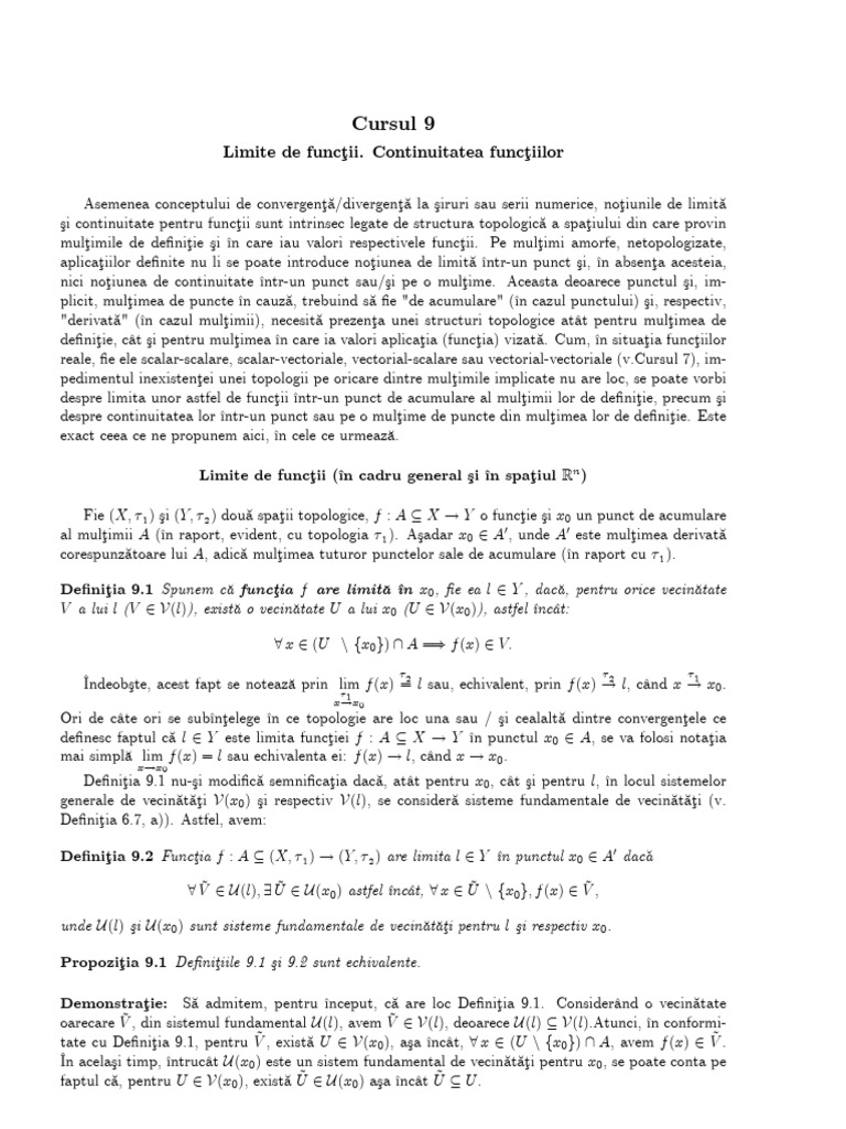 Demonstraţie: S¼ a admitem, pentru început, c¼ a are loc De…niţia 9.1. Considerând o vecin¼ atate