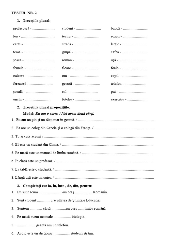 1. Treceţi la plural: