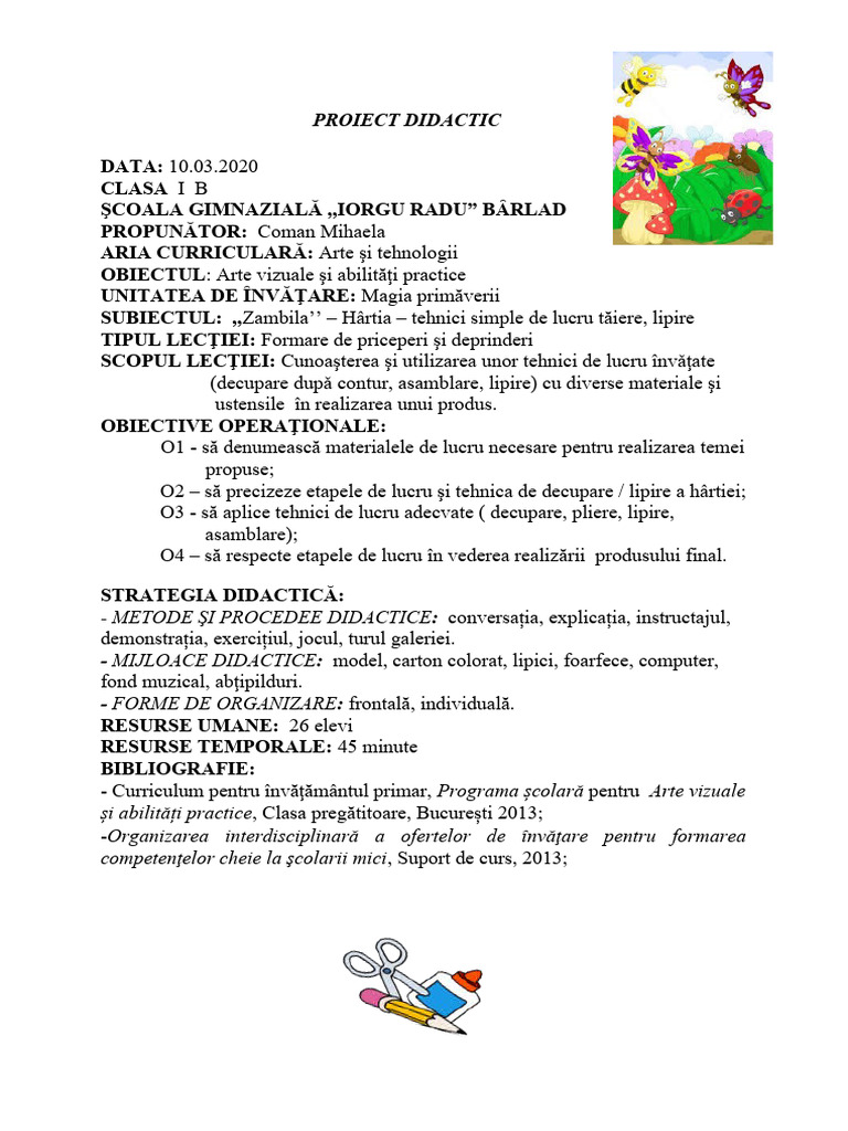 subiectului 2’ zambila, vor respecta etapele de lucru, vor lucra explicaţia activitate sistematică