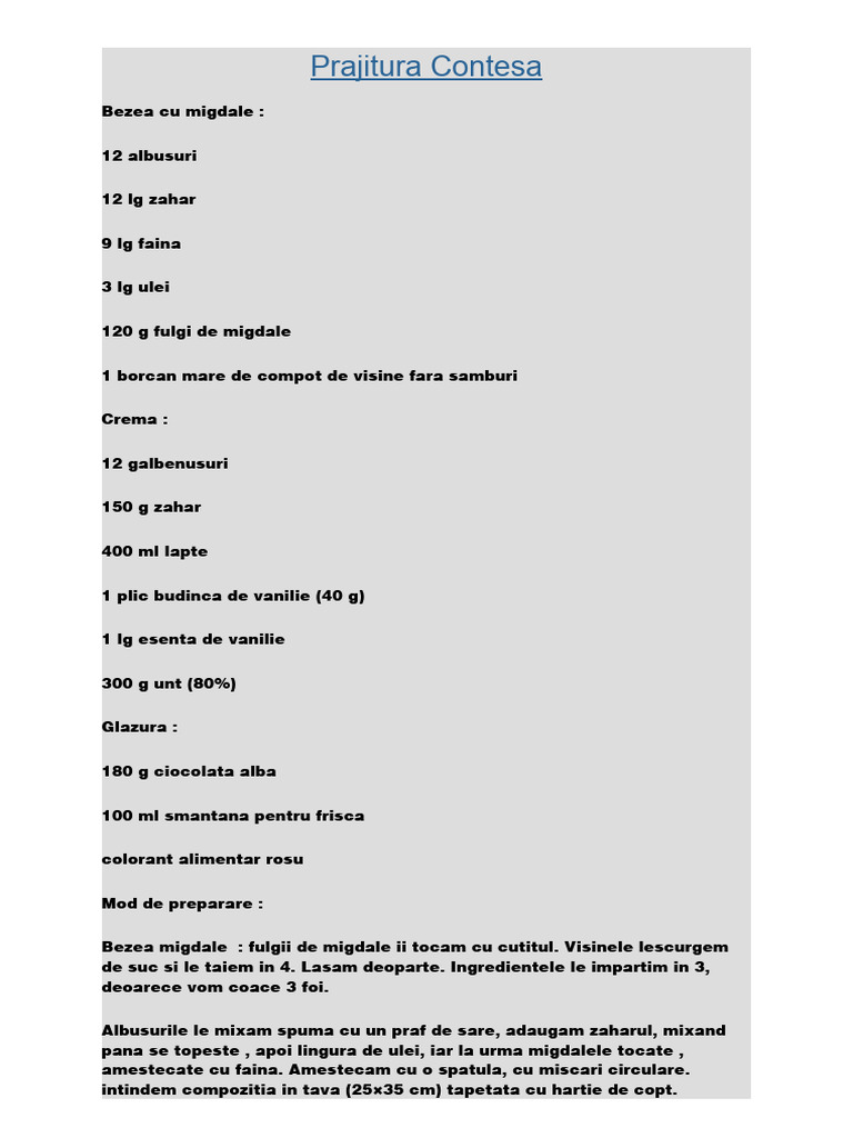 Dam prajitura la rece de seara pana dimineata sau pentru minim 4 ore.