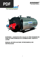 Schimbătorul de căldură este de tip vretical cu tuburi de oţel imersate în apa cu 2 treceri de fum pentru