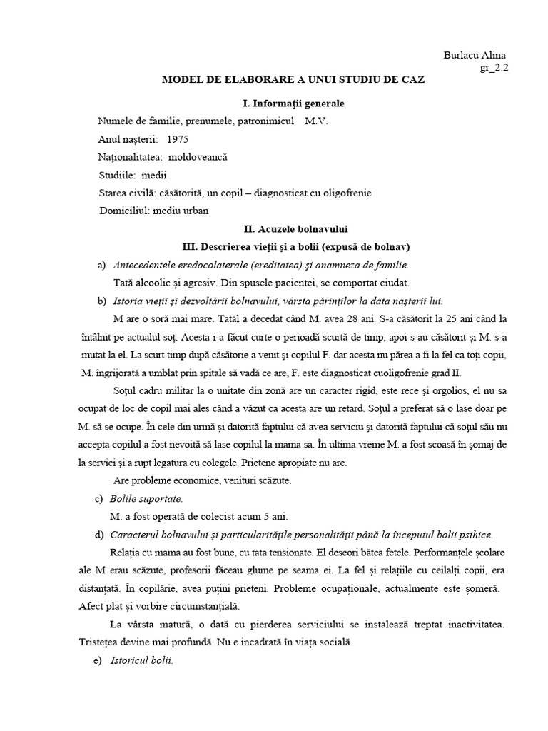 MODEL DE ELABORARE A UNUI STUDIU DE CAZ