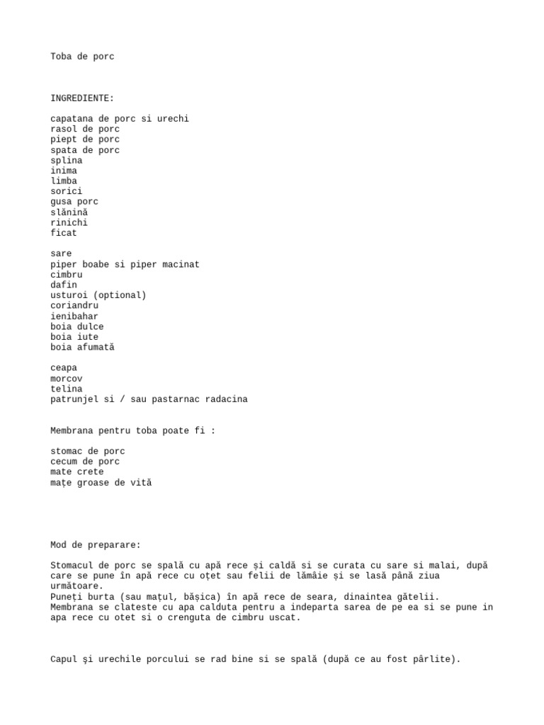 Toba se fierbe in supa rezultata dupa fierberea capului, timp de 30 de minute, dupa