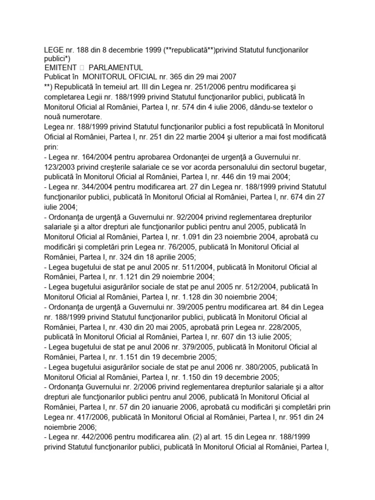 188/1999, publicată în Monitorul Oficial al României, Partea I, nr. 251 din 22 martie