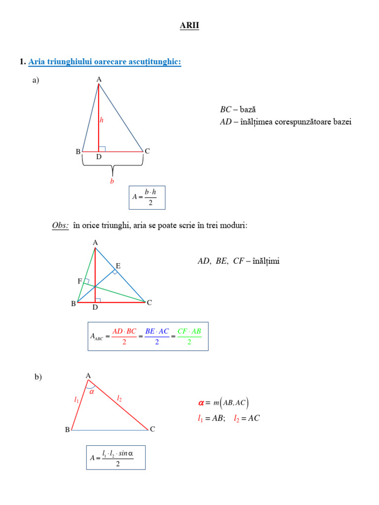 1. Aria triunghiului oarecare ascuțitunghic: