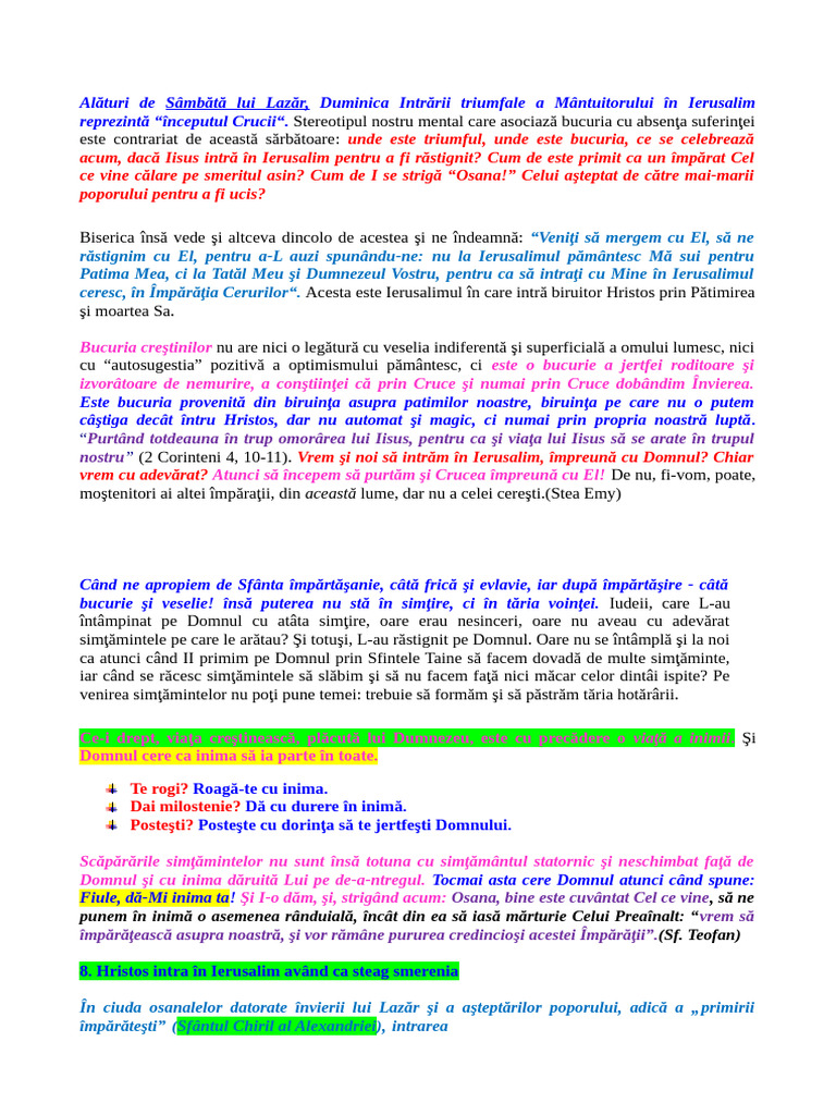 nostru” (2 Corinteni 4, 10-11). Vrem şi noi să intrăm în Ierusalim, împreună cu Domnul? Chiar