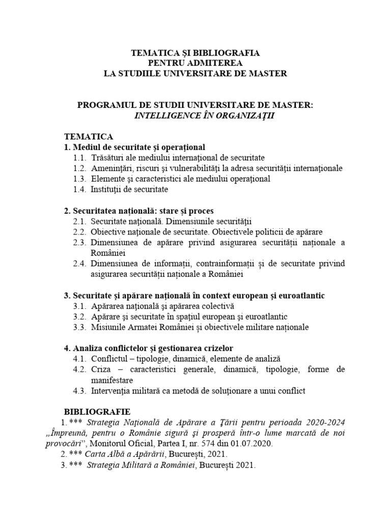 TEMATICA ŞI BIBLIOGRAFIA