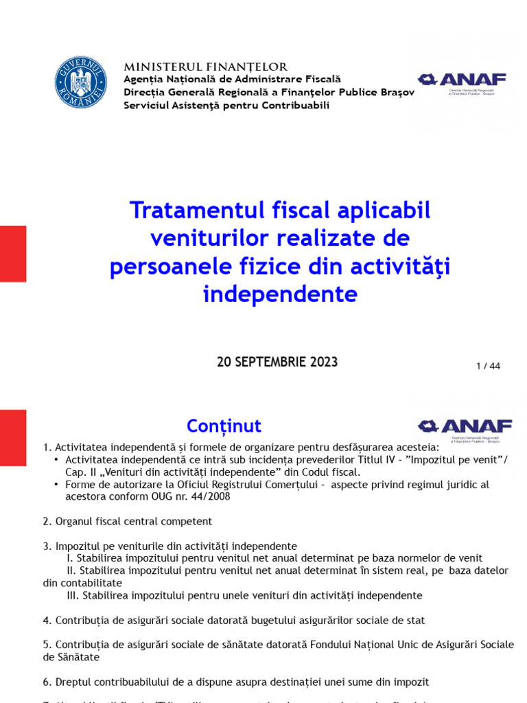 - O.U.G. nr. 44/2008 privind desfăşurarea activităţilor economice de către persoanele fizice autorizate,