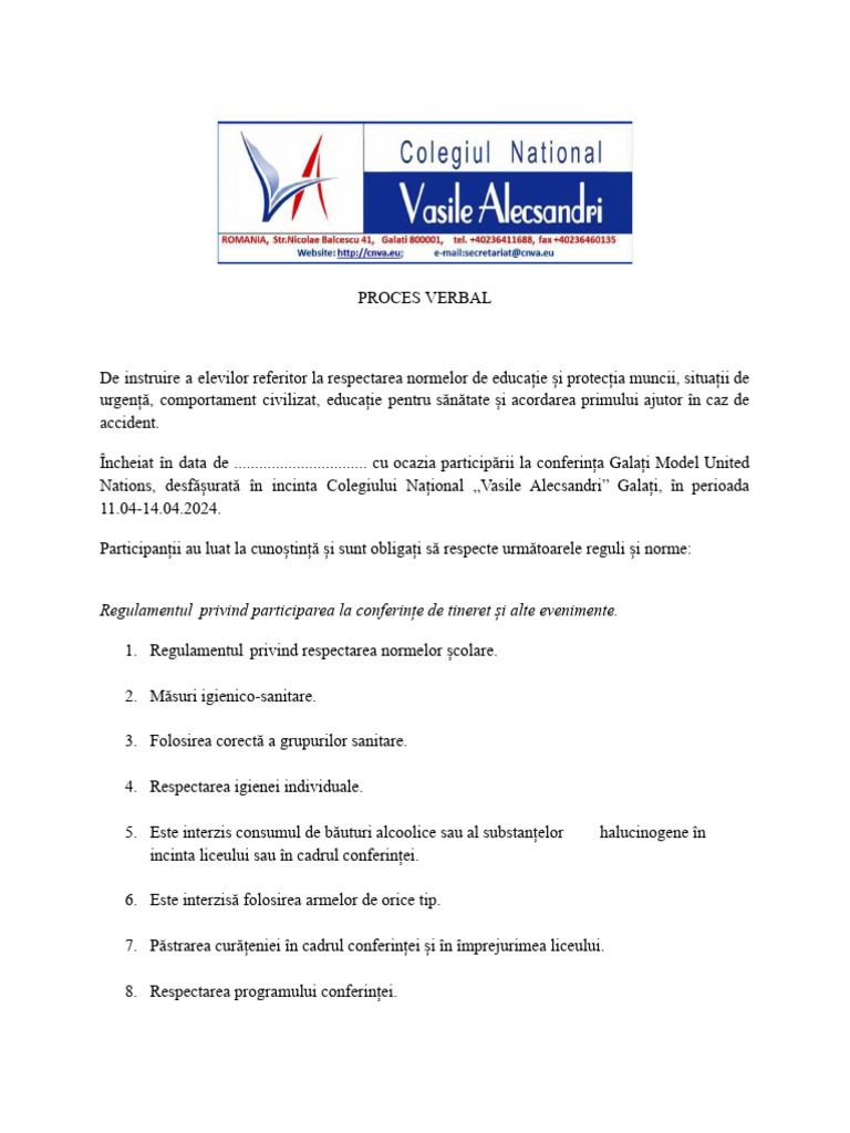 Încheiat în data de ................................ cu ocazia participării la conferința Galați Model United