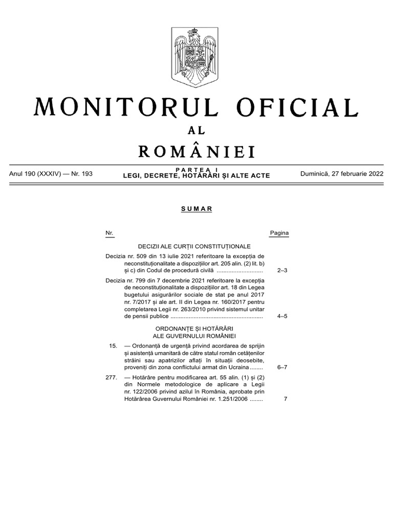 Anul 190 (XXXIV) — Nr. 193 LEGI, DECRETE, HOTĂRÂRI ȘI ALTE ACTE Duminică, 27 februarie 2022