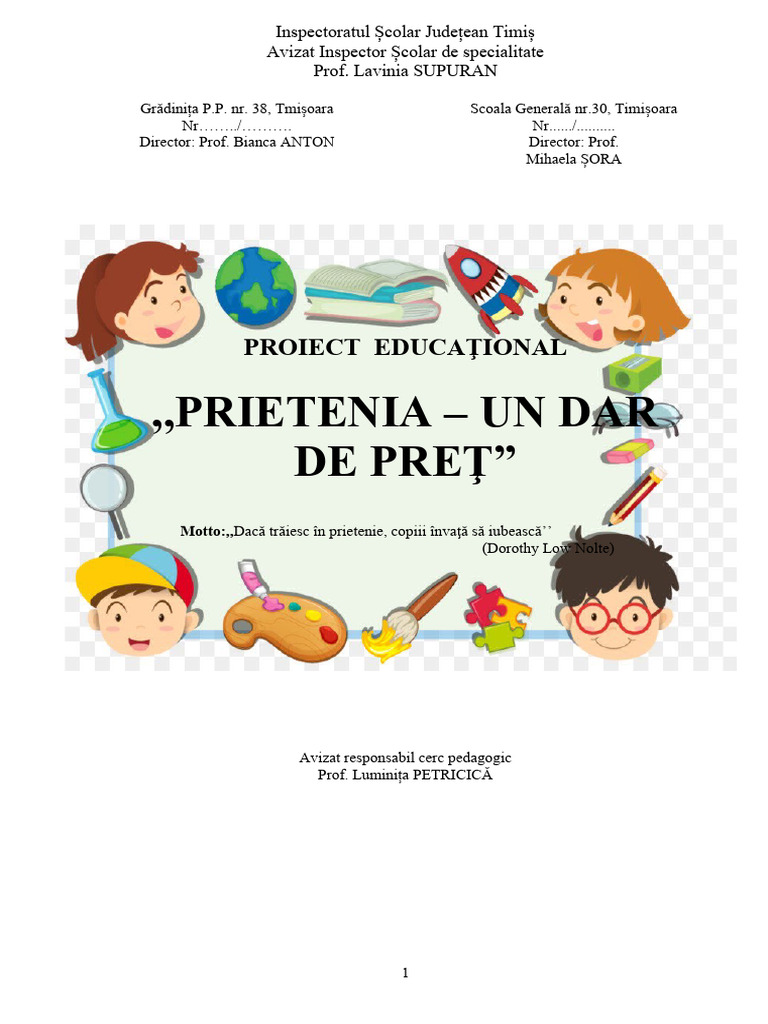 Motto:,,Dacă trăiesc în prietenie, copiii învaţă să iubească’’