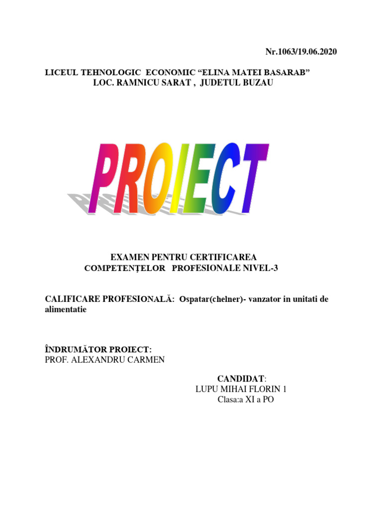 CALIFICARE PROFESIONALĂ: Ospatar(chelner)- vanzator in unitati de