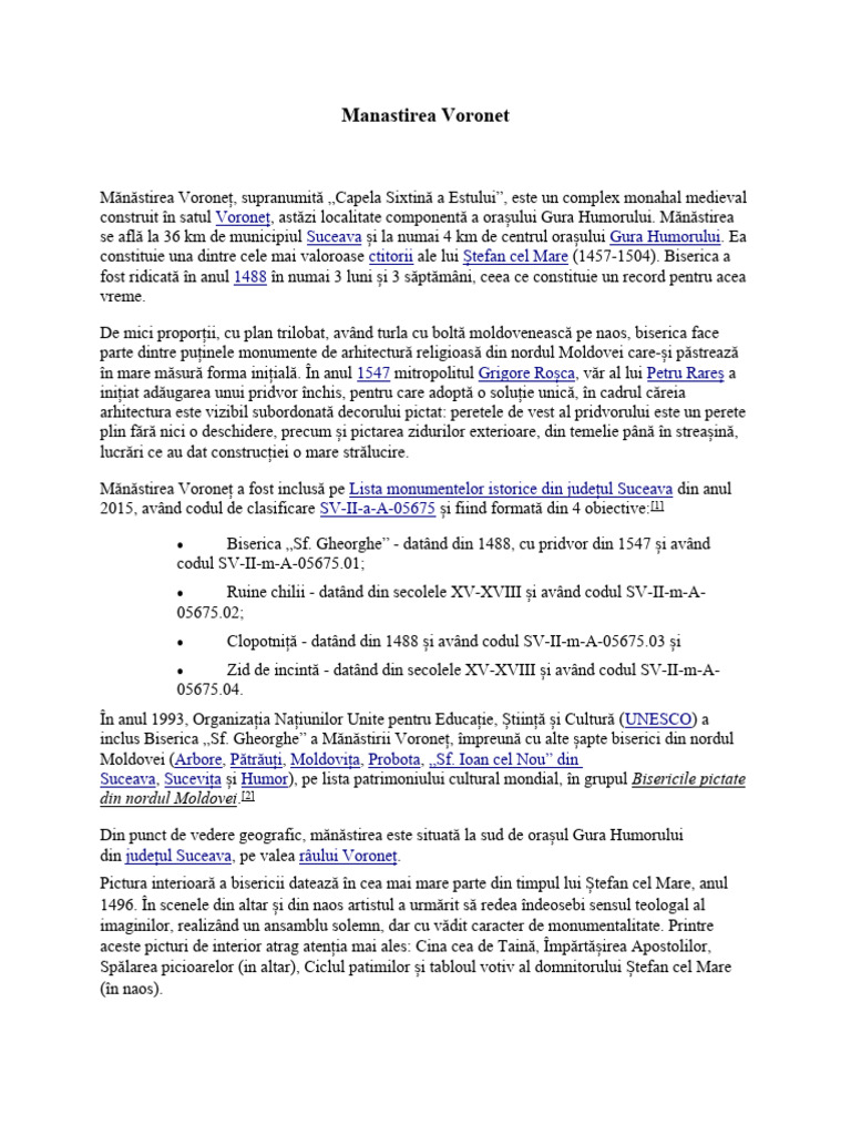 Mănăstirea Voroneț, supranumită „Capela Sixtină a Estului”, este un complex monahal medieval
