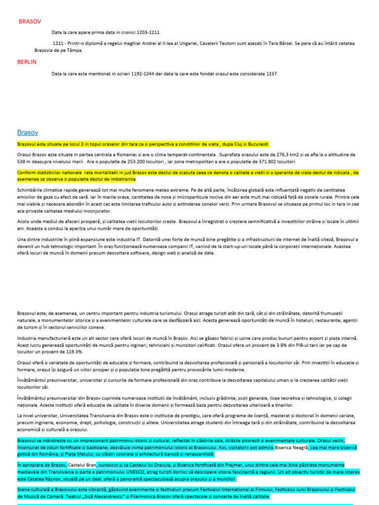 gotică din România, și Piața Sfatului, cu clădiri colorate și arhitectură barocă și renascentistă.