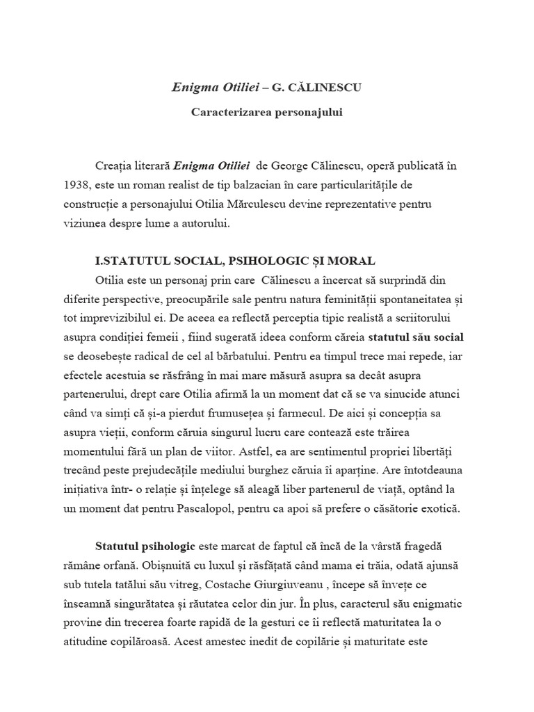 construcție a personajului Otilia Mărculescu devine reprezentative pentru