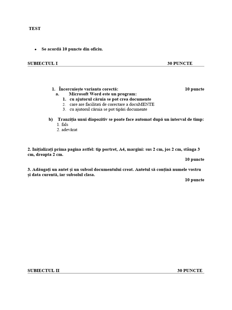 Se acordă 10 puncte din oficiu.