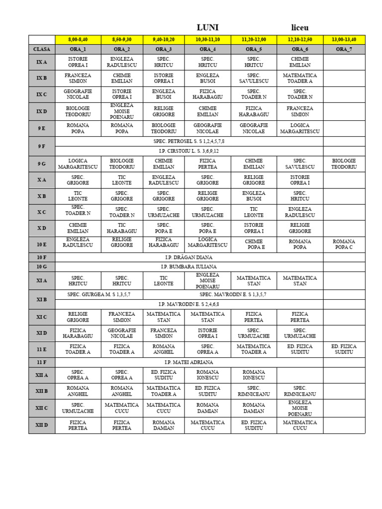 CLASA ORA_1 ORA_2 ORA_3 ORA_4 ORA_5 ORA_6 ORA_7