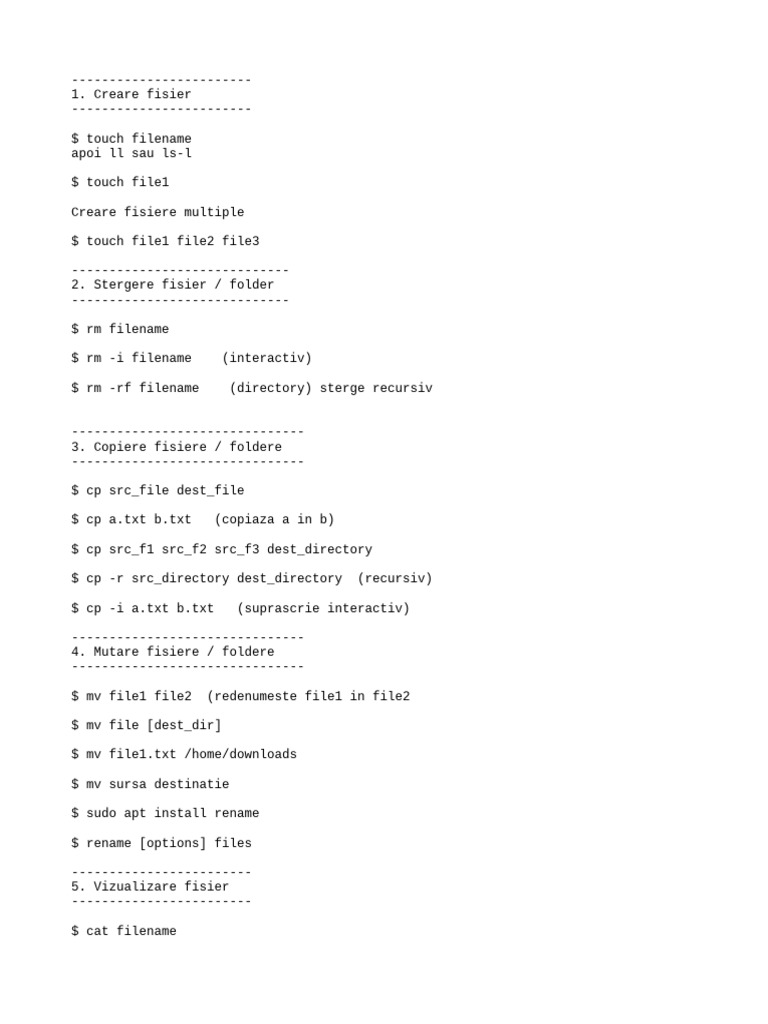 $ cat file1 file2 (pt vizualizare mai multe fisiere)