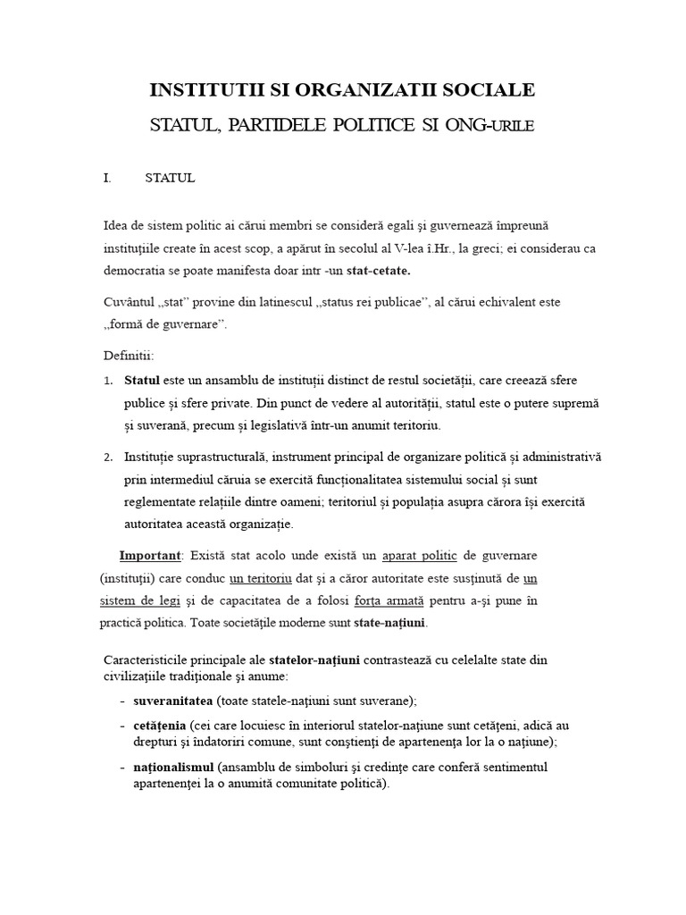 1. Statul este un ansamblu de instituții distinct de restul societății, care creează sfere