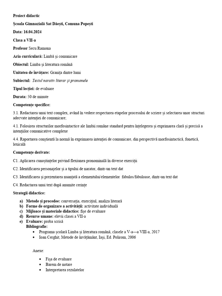 Proiect didactic