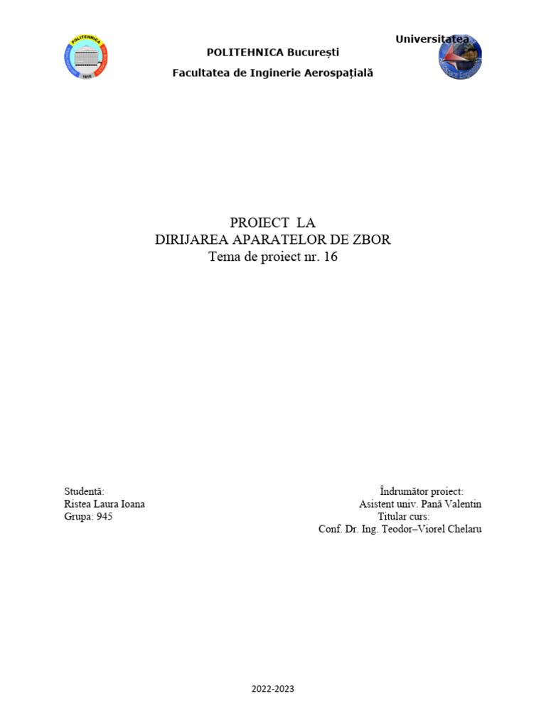 [Link] zborului pe modelul neliniar, analiza sumară a performantelor aparatului.........................51