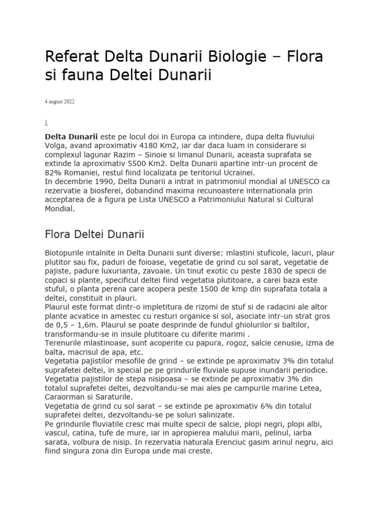 Fotografii Referat Delta Dunarii Biologie – Flora si fauna