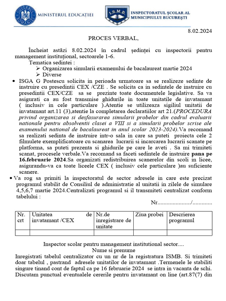 PROCEDURII de simulare ) sa le transmiteti luni 12 februarie 2024 , la