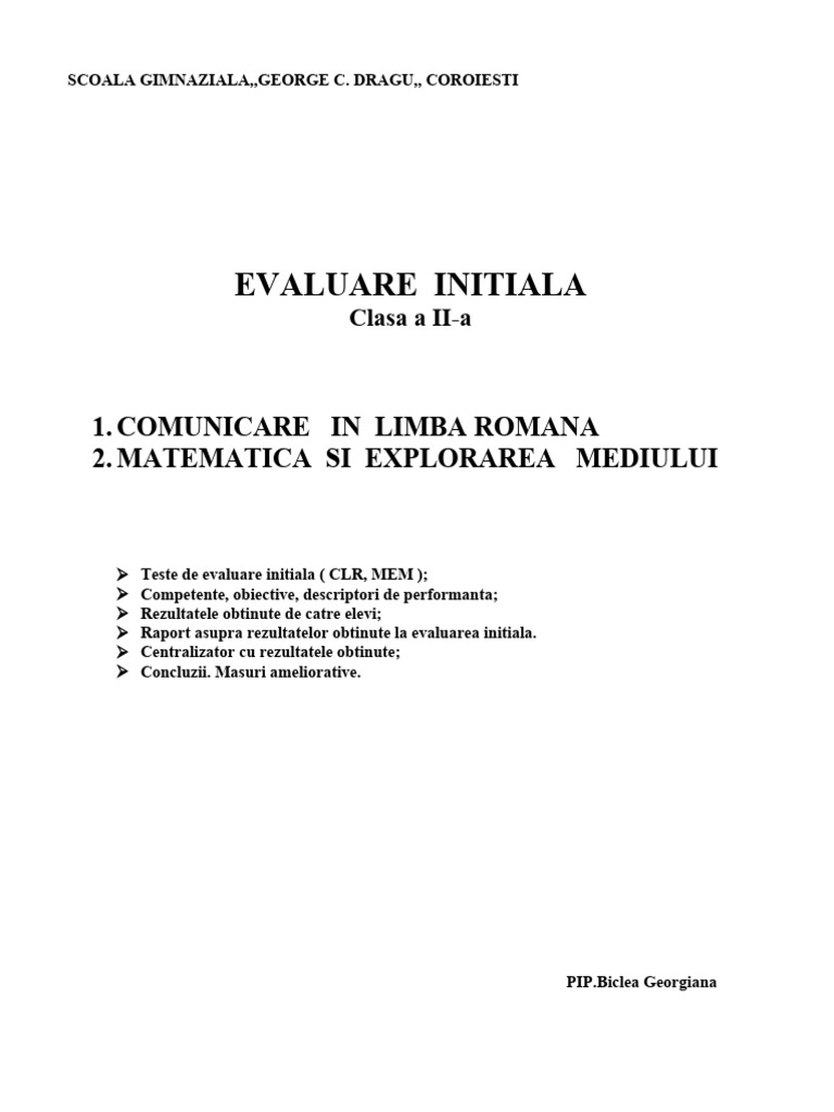 EVALUARE INITIALA CLASA A II-A