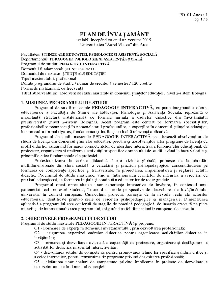 Programul de studiu: PEDAGOGIE INTERACTIVĂ