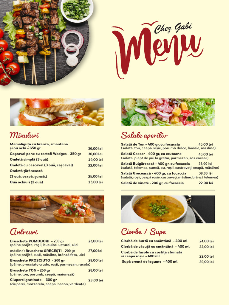 coaste la grătar, mici, cartofi prăjiți, salată de varză) 5,00 lei