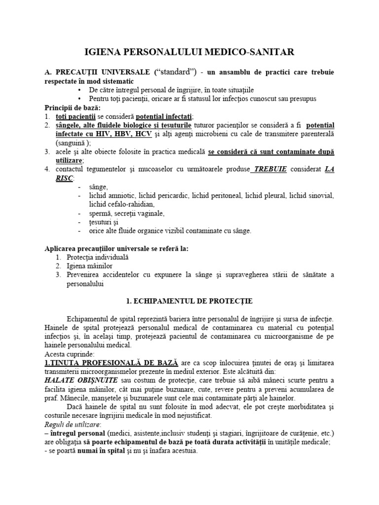 IGIENA PERSONALULUI MEDICO-SANITAR