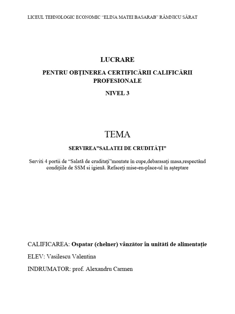 Tehnica servirii ”Salatei de crudități”......................................................pag.4