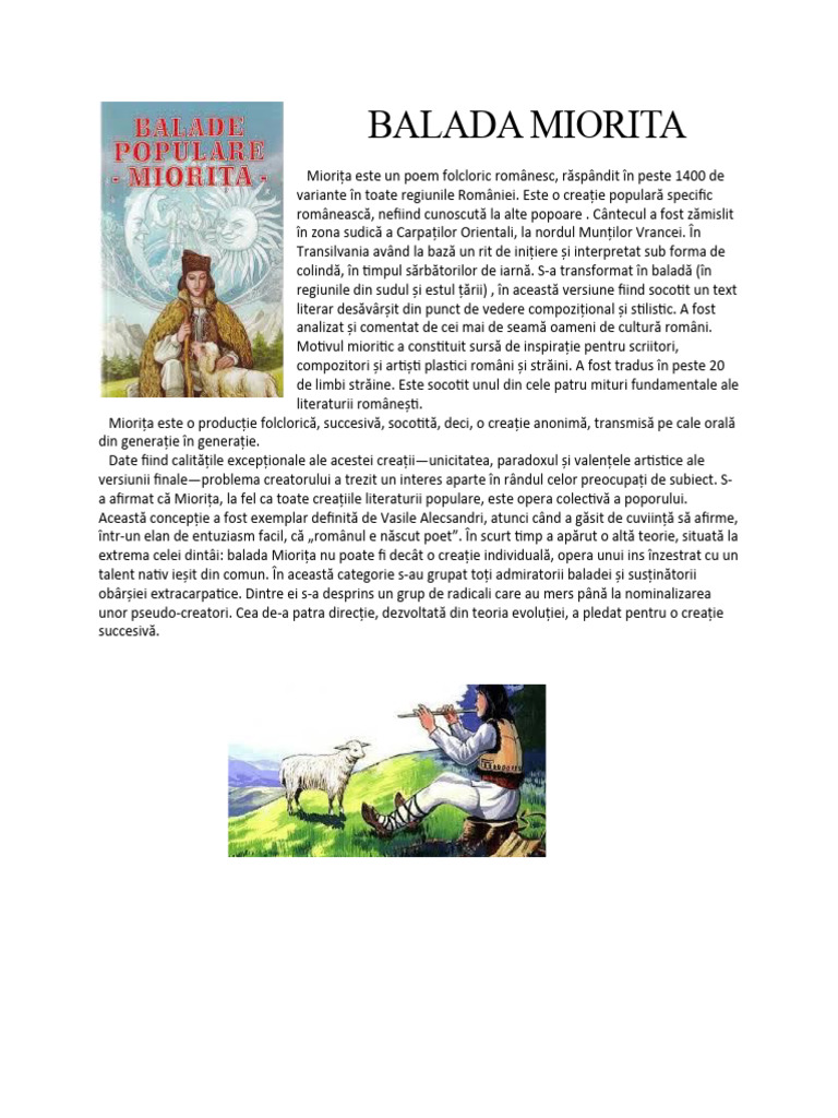 Miorița este un poem folcloric românesc, răspândit în peste 1400 de